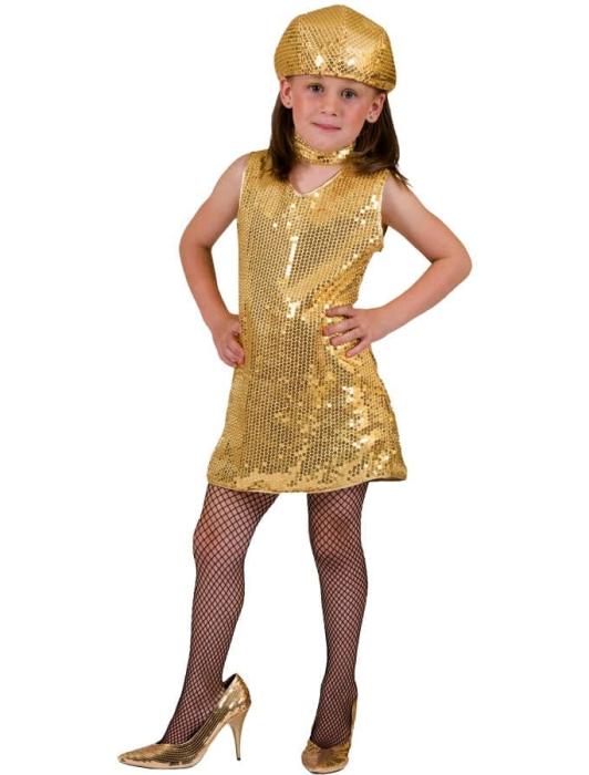 Карнавальный костюм для девочек.Блестящее платье золотого цвета, украшение на шею.