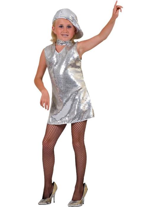 Карнавальный костюм для девочек. Блестящее платье серебряное с украшением на шею.
