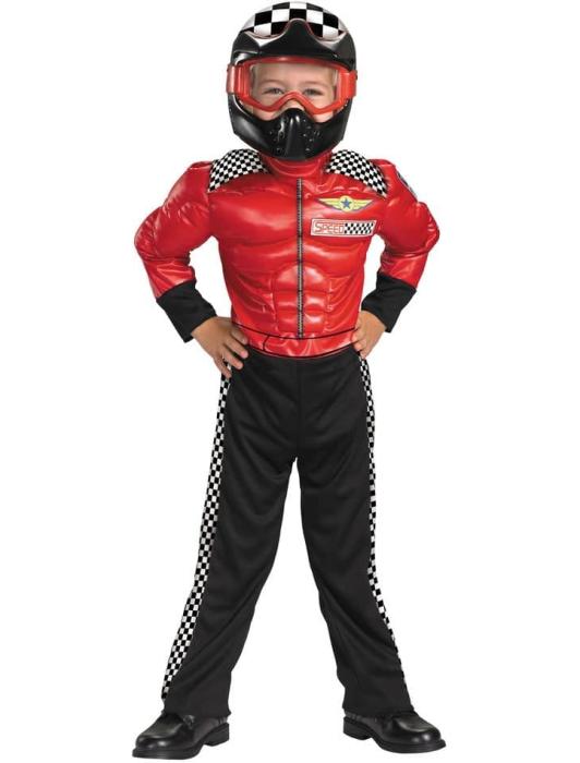 Карнавальный костюм для мальчиков. Красный комбинезон с мускулами,шлем.