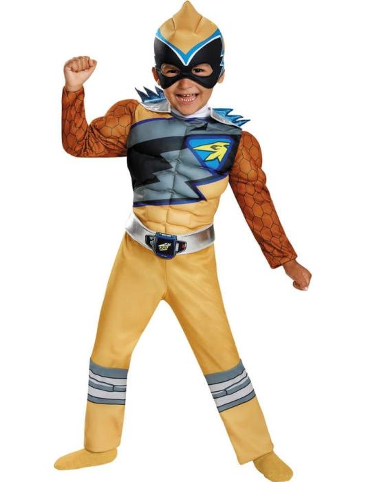 Карнавальный костюм для мальчика.Ваш малыш может стать Рейнджером! Комбинезон с мышцами туловища и рук с прикрепленным ремнем с мягкой пряжкой, съемные плечевые части, и мягкий головной убор. Золотой Рейнджер.