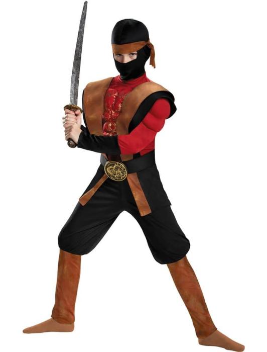 Карнавальный костюм для мальчиков. Комбинезон с мышцами туловища и рук, капот, съемный держатель и пряжка. Игрушка - оружие не входит.