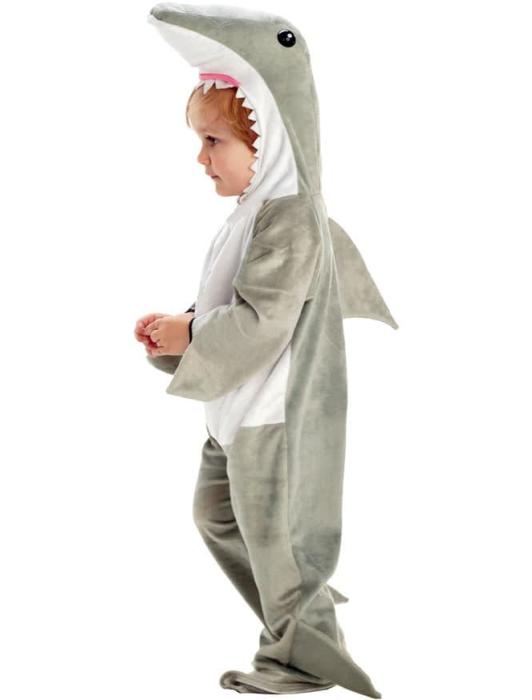 Костюм акулы включает комбинезон с прикреплёнными пинетками и капюшоном.