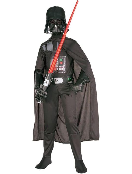 Костюм Дарт Вейдера из фильма "Звёздные войны" включает маску, чёрную накидку, комбинезон и пояс. Светящийся меч и перчатки продаются отдельно.