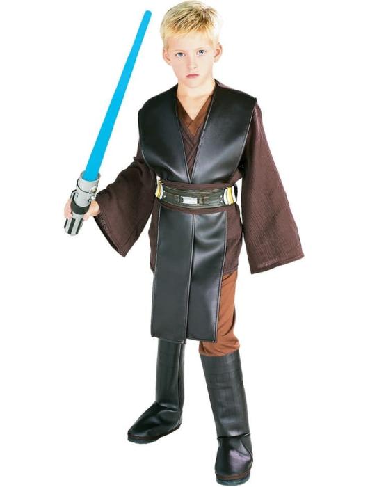 Костюм Энакина Скайуокера из фильма "Звёздные войны" включает тунику, кофту, брюки, бахилы, пояс. Ботинки и световой меч не включены.