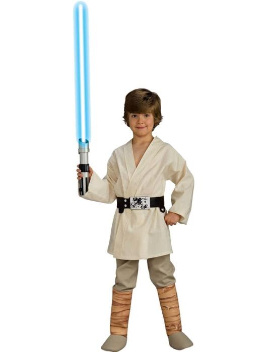 Костюм Люка Скайуокера из кинофильма "Звёздные войны" включает тунику, брюки, бахилы и пояс. Световой меч не включен.