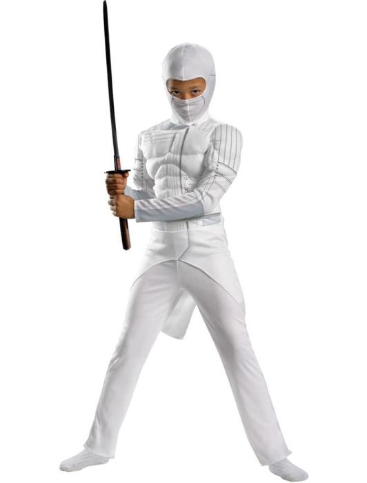 Костюм Сторма Шэдоу из фильма "Бросок кобры 2" включает комбинезон с мускулами и капюшоном. Носки и оружие не включены.
