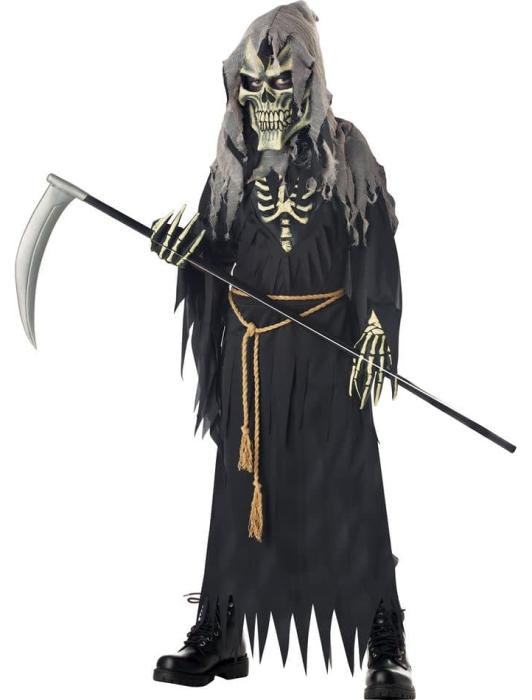 Костюм включает мантию, головной убор, маску, перчатки и пояс. Коса и ботинки не включены.