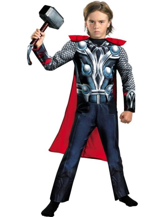 Костюм Тора включает комбинезон и съёмную накидку. Молоток и носки не включены.