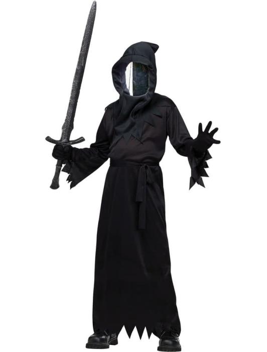 Костюм включает мантию, капюшон с маской в виде зеркала, перчатки и пояс. Брюки, ботинки и меч не включены.