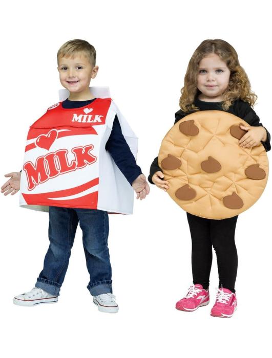 Забавные туники для детей. Одна в виде пакета молока, вторая в форме печенья.