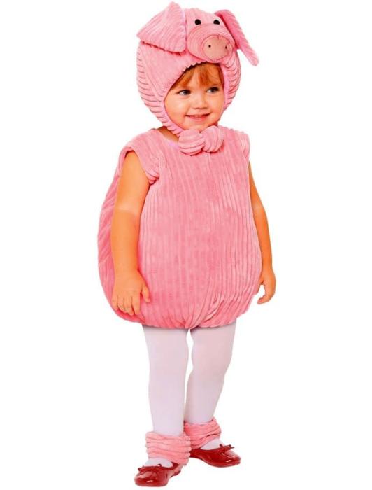 Карнавальный костюм для малышей. Костюм свинки включает розовое боди, головной убор и повязки на ноги. 100% полиэстер.