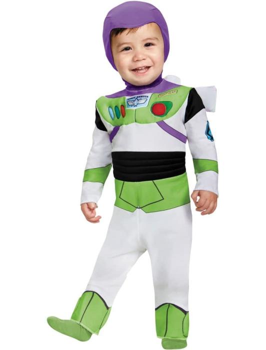 Карнавальный костюм Базз Лайтер включает комбинезон и головной убор.