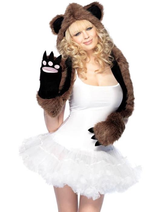 Плюшевый головной убор с прикреплённым шарфом.
