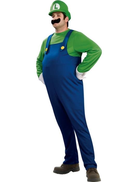 Костюм Луиджи из "Супербратья Марио" включает надувной комбинезон, шапку, перчатки и усы. Обувь не включена.