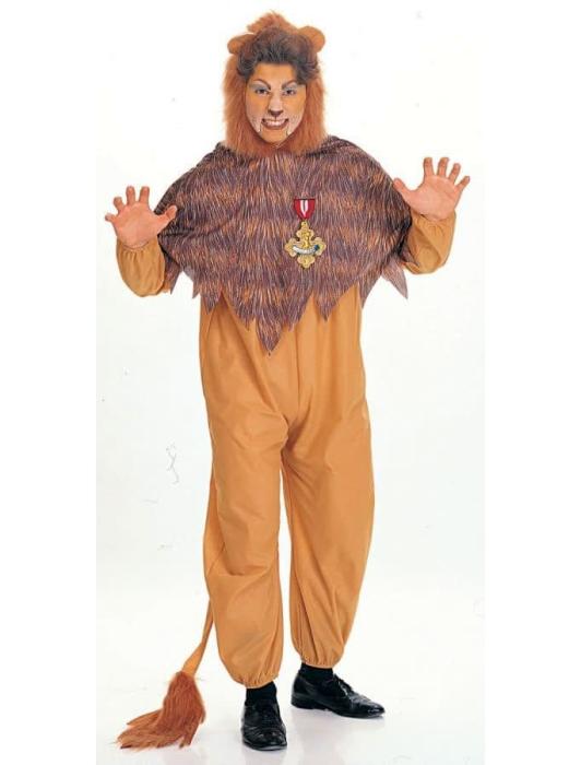 Костюм Трусливого лльва из "Волшебник страны Оз" включает комбинезон и головной убор.