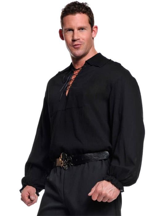 Карнавальный мужской костюм. Чёрная рубашка с длинными рукавами на шнуровке.